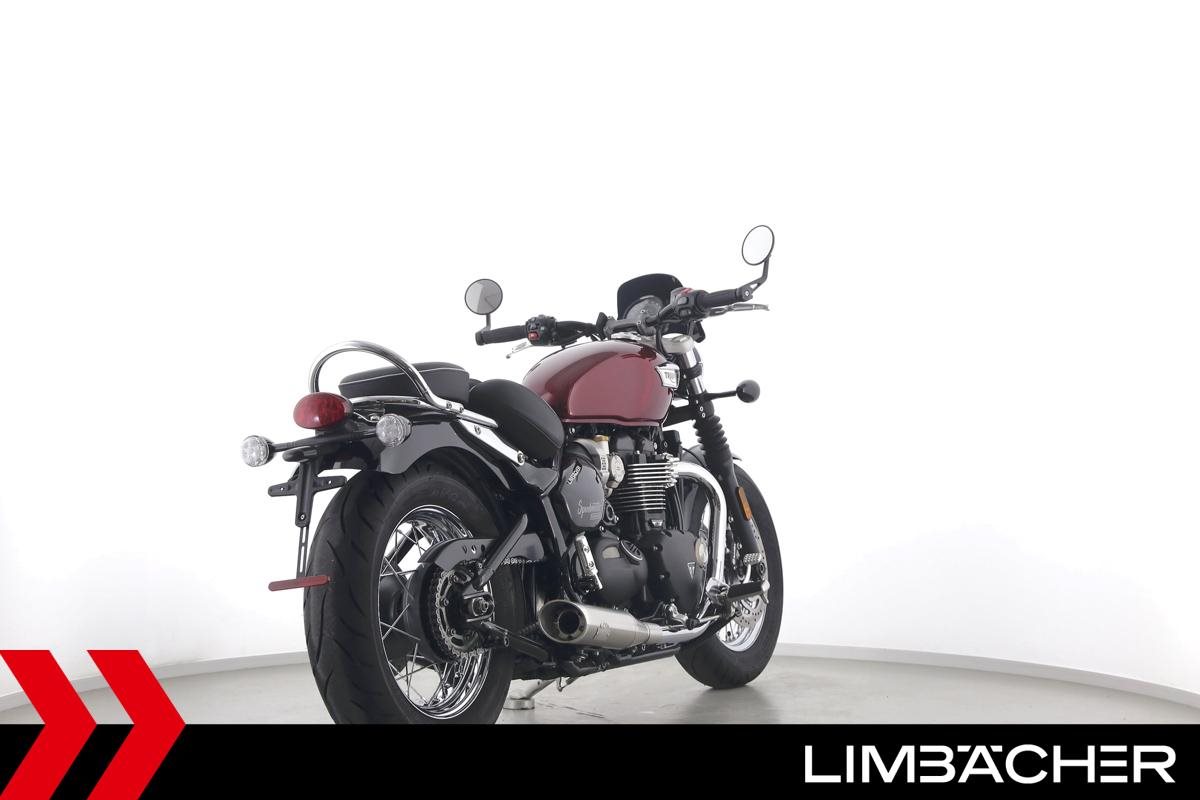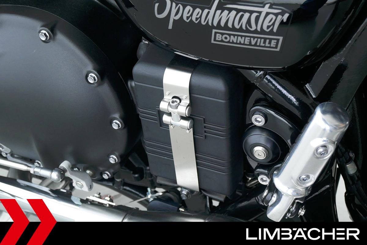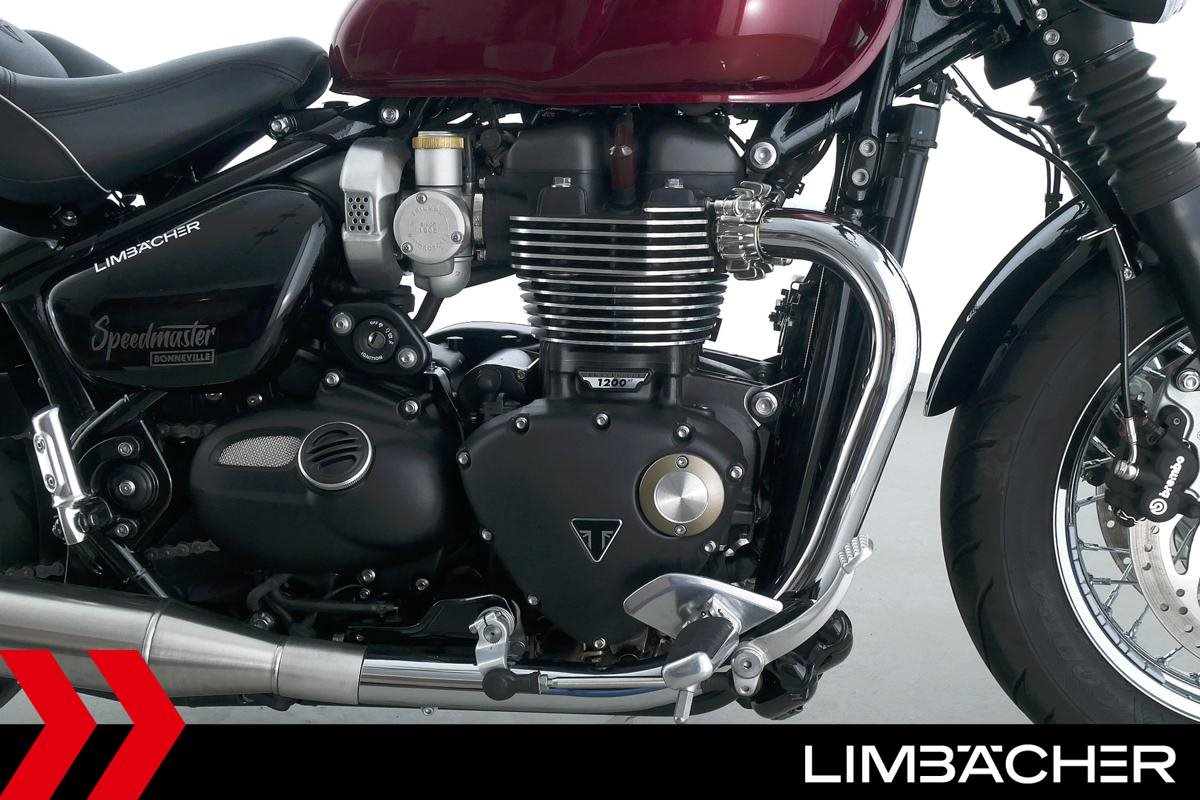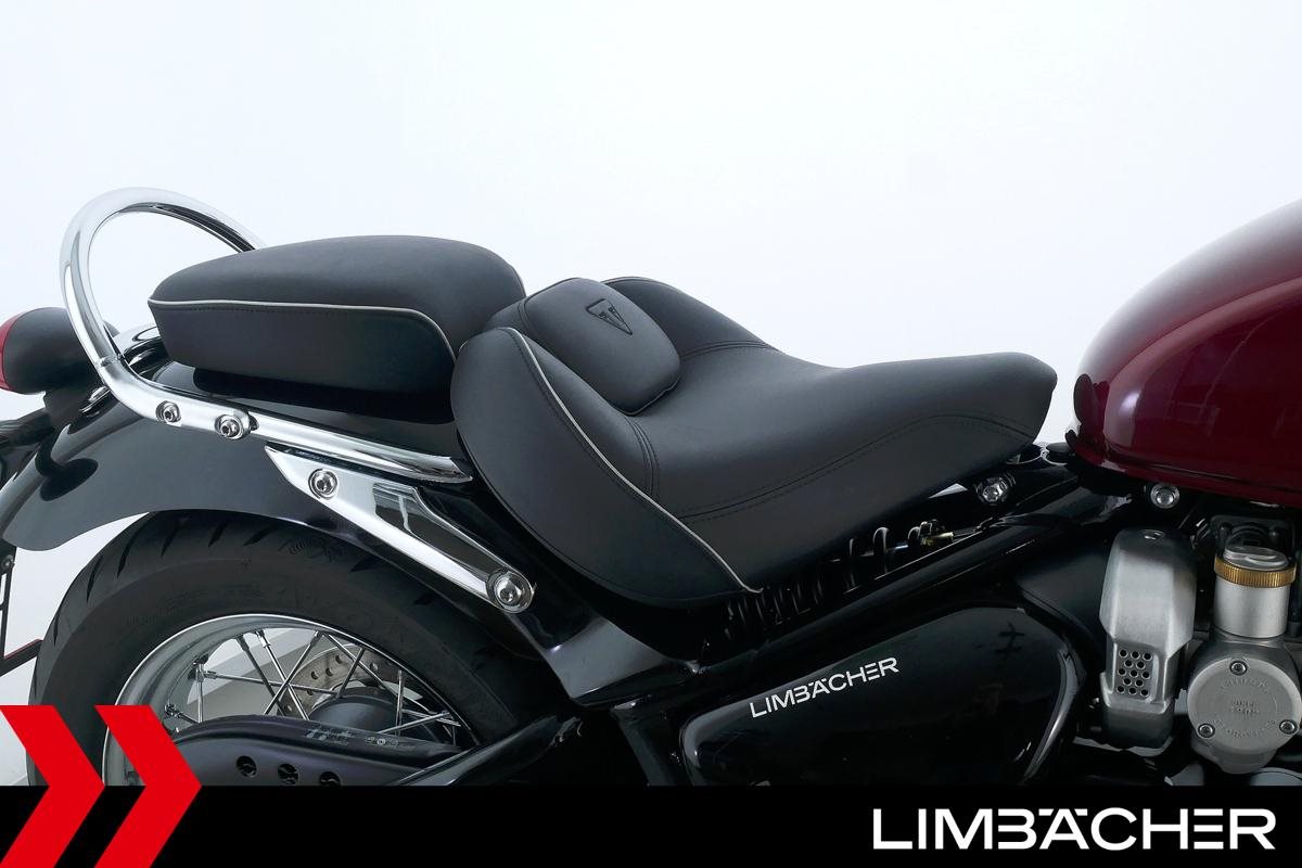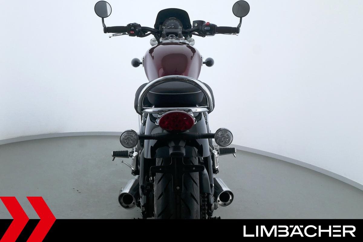 Eine scheckheftgepflegte Triumph Bonneville Speedmaster 1200 aus erster Hand in Topzustand u.a. mit Jekill&Hyde-Klappenauspuff sowie Lenker vom Bonneville Bobber.