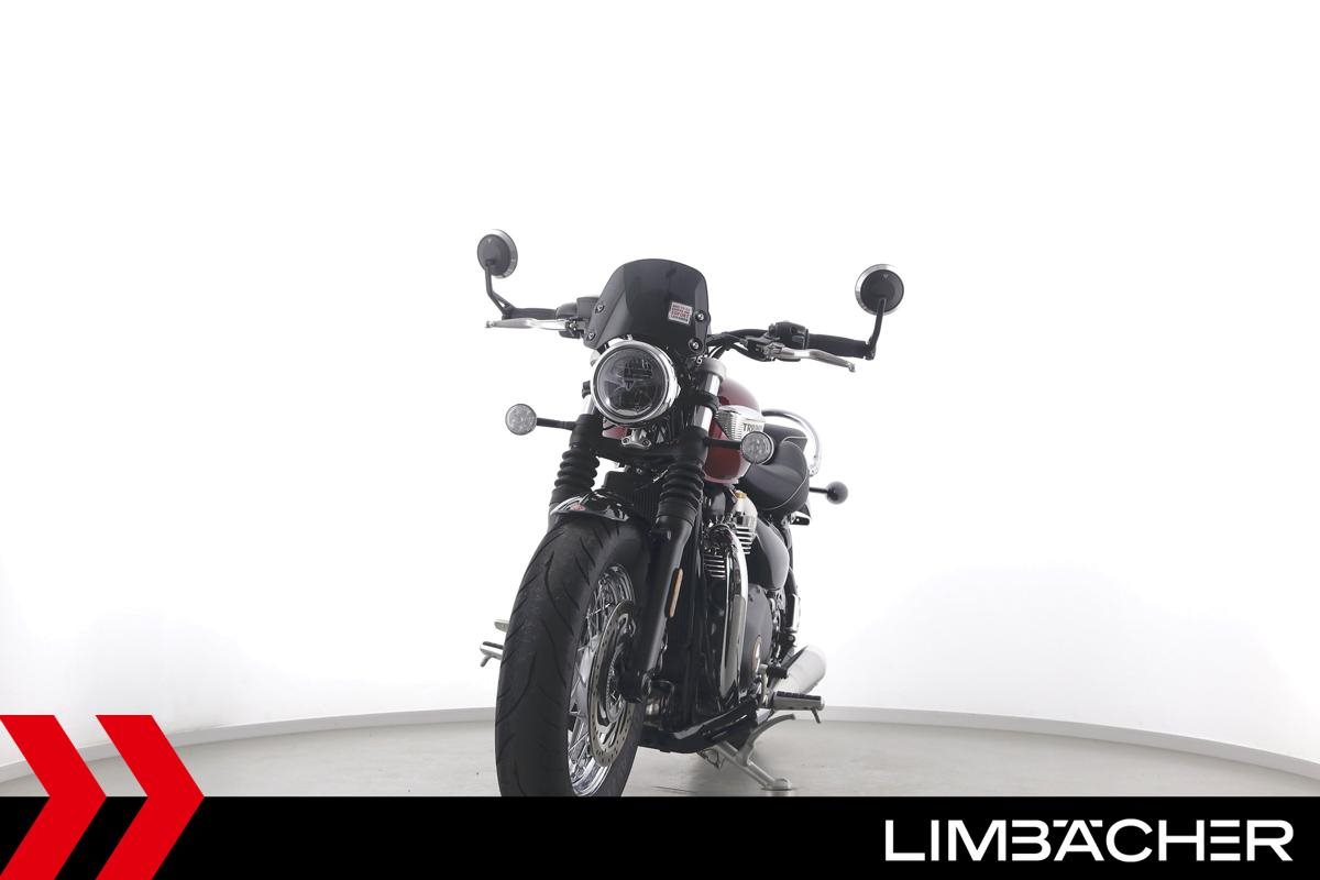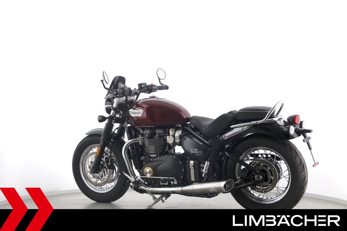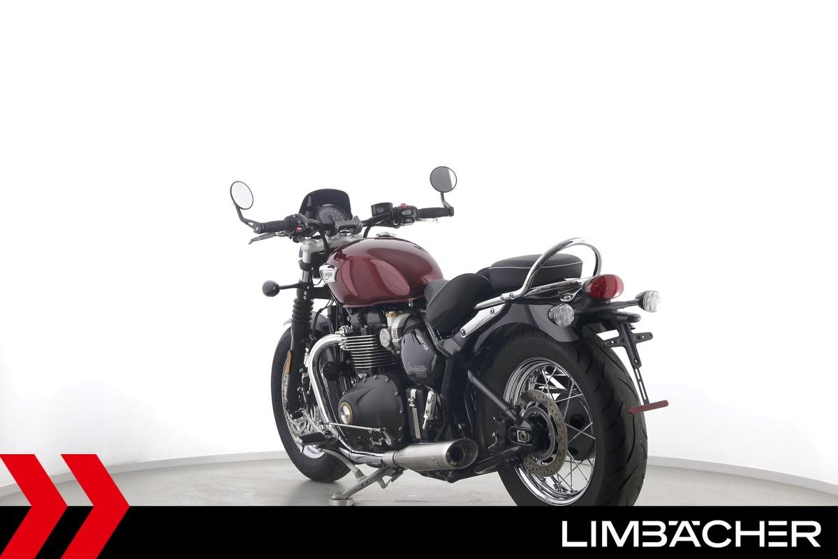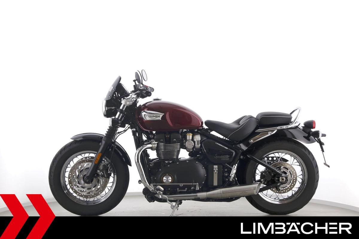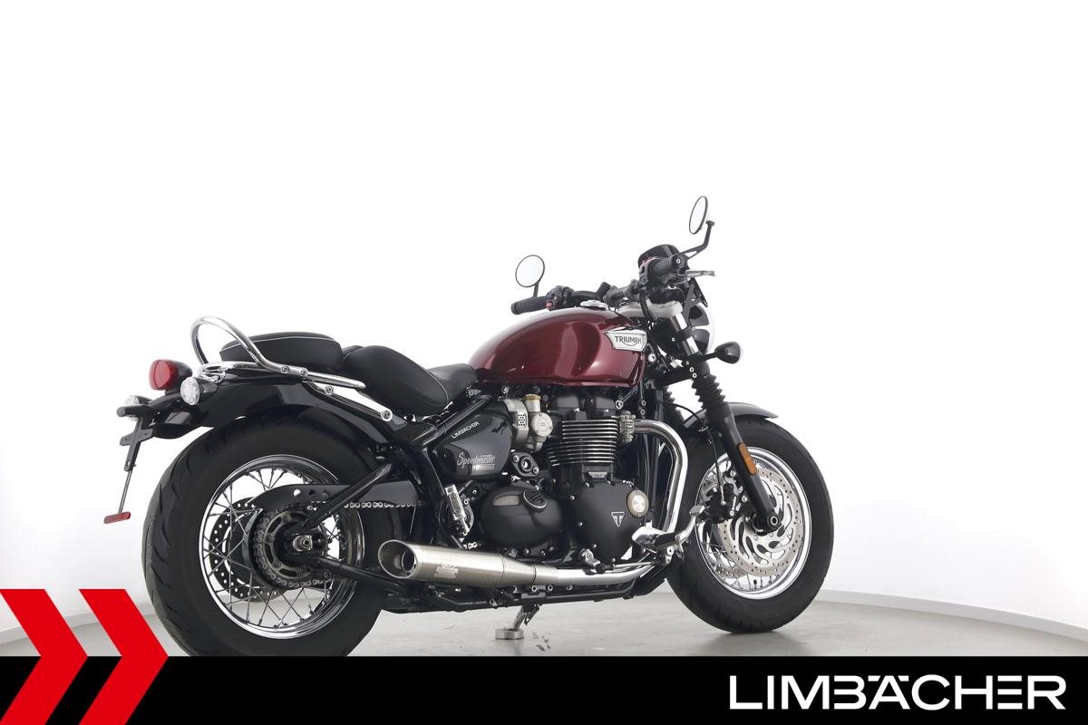 Eine scheckheftgepflegte Triumph Bonneville Speedmaster 1200 aus erster Hand in Topzustand u.a. mit Jekill&Hyde-Klappenauspuff sowie Lenker vom Bonneville Bobber.