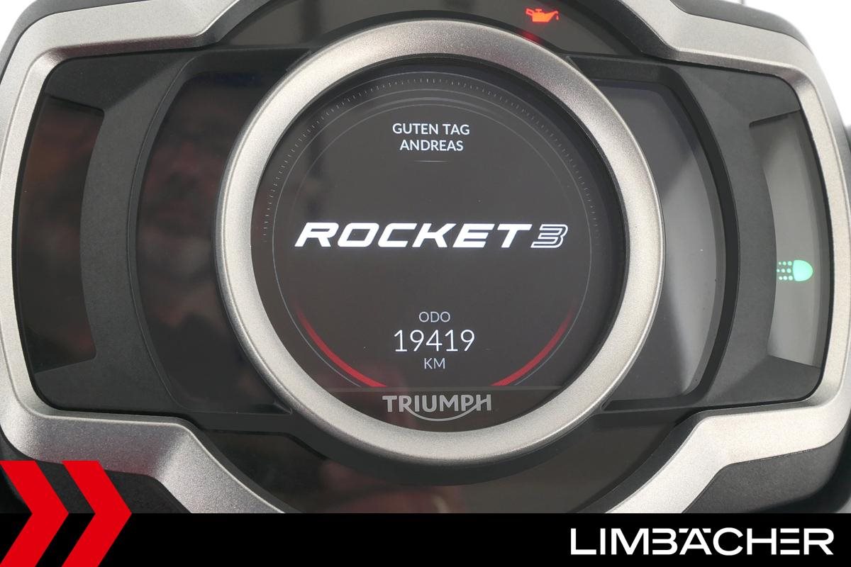 Eine scheckheftgepflegte Triumph Rocket 3 GT aus erster Hand in sehr gepflegtem Zustand mit Gepäckträger.