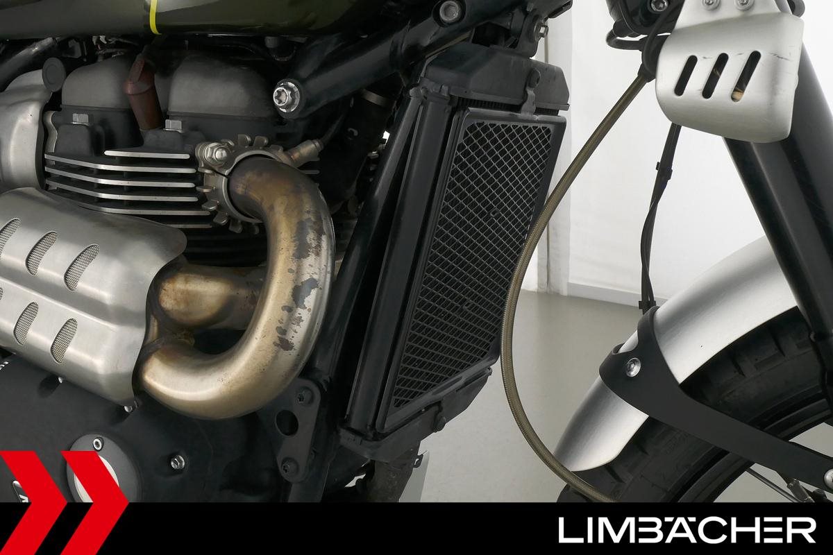 Eine scheckheftgepflegte Triumph Scrambler 1200 XC aus erster Hand in gepflegtem Zustand u.a. mit LED Zusatzscheinwerfern sowie Öhlins-Federbeinen.