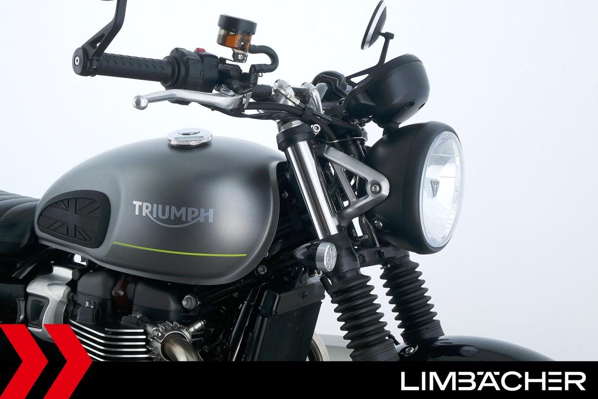 Eine scheckheftgepflegte Triumph Speed Twin 900 aus erster Hand in Topzustand u.a. mit kurzem Kennzeichenhalter und Riding-Modes.