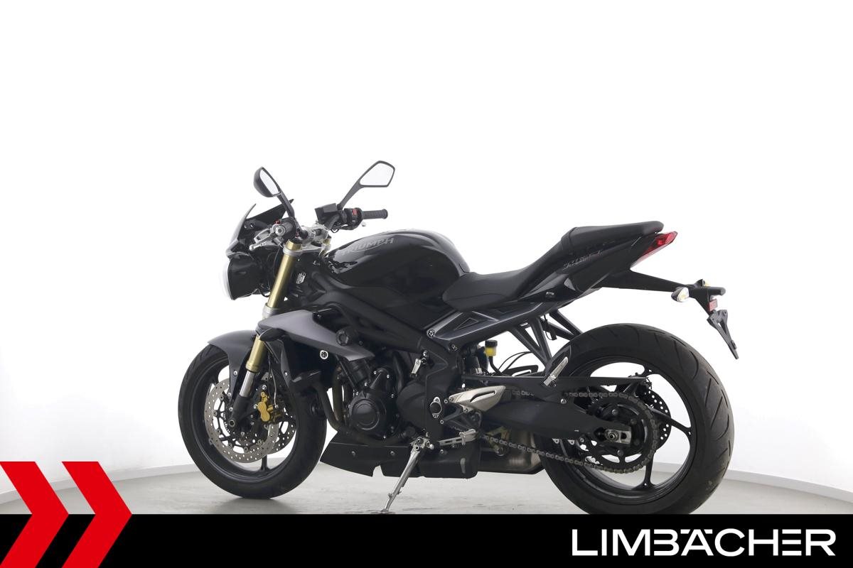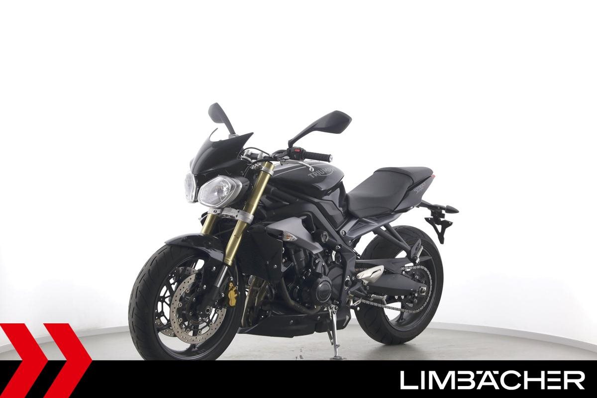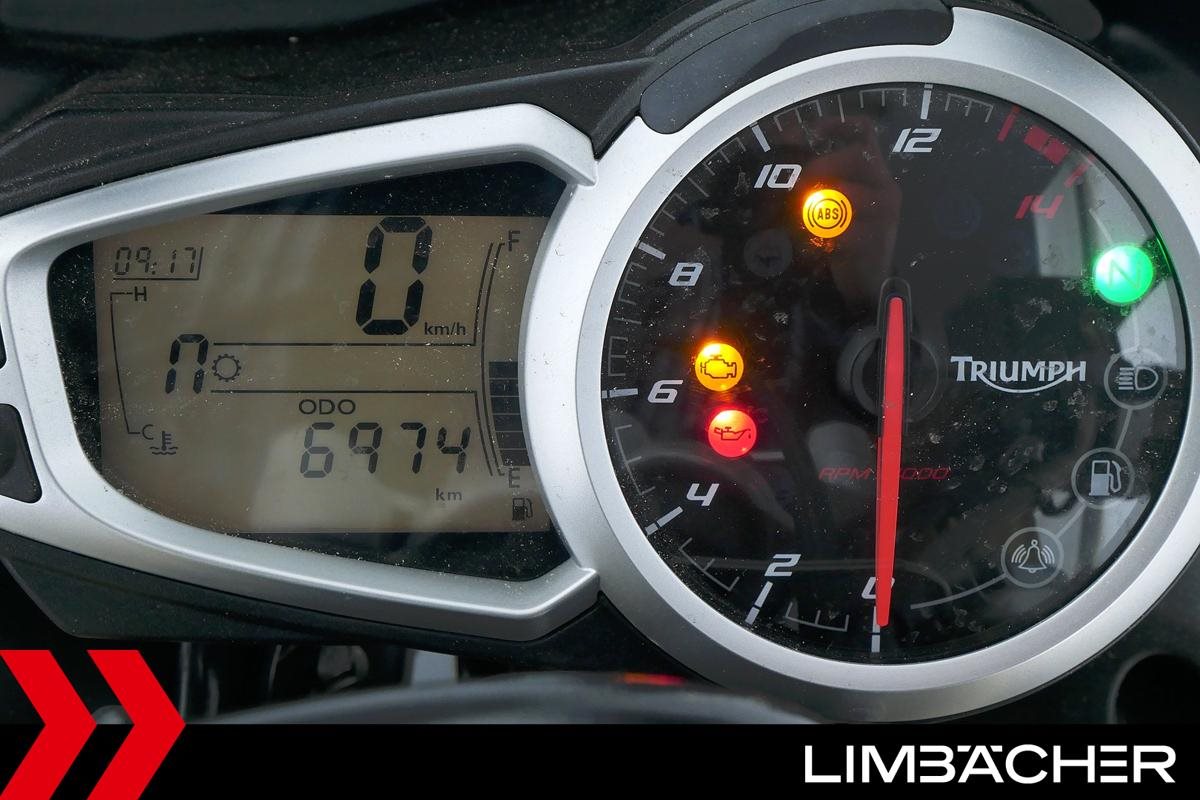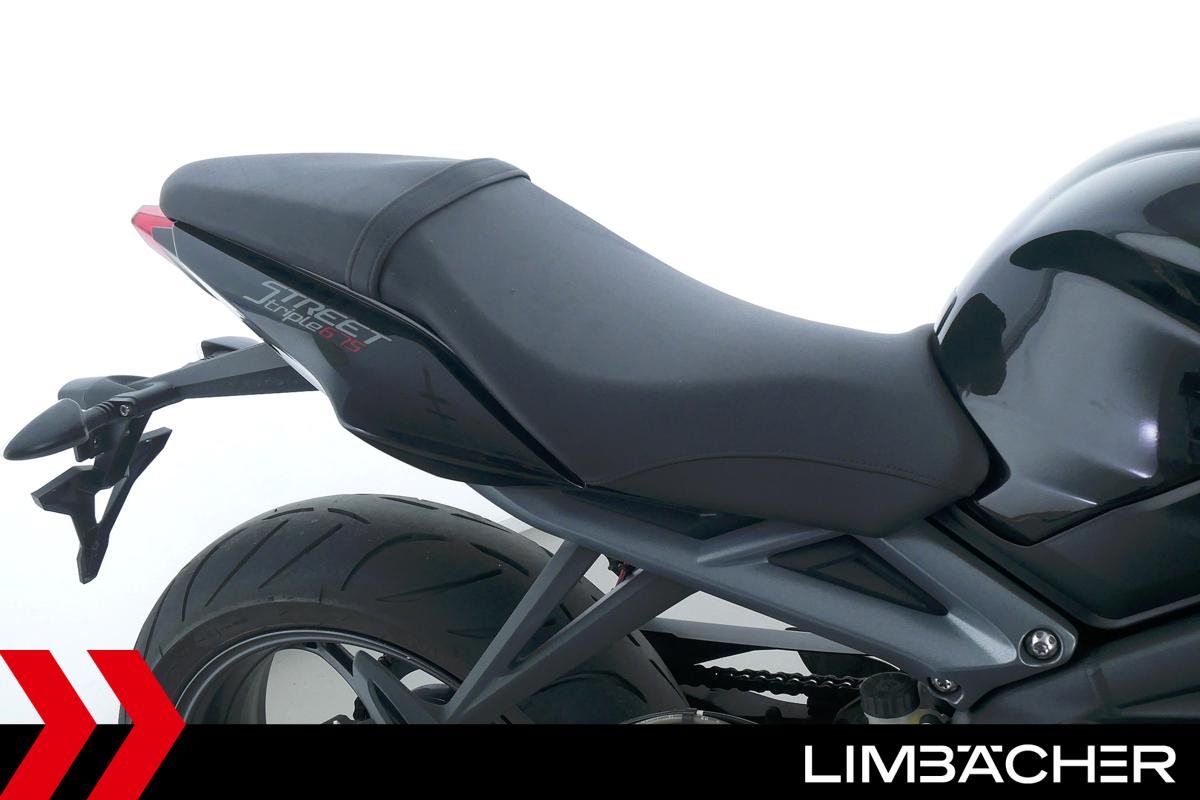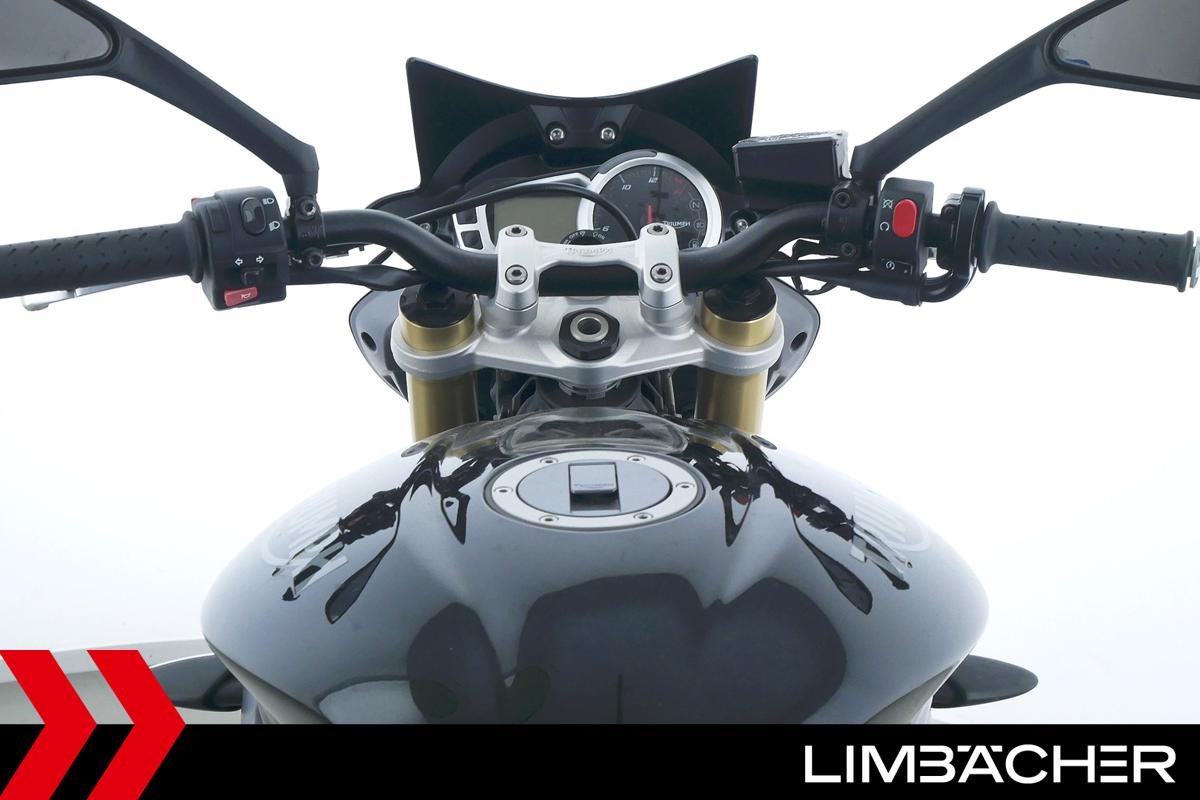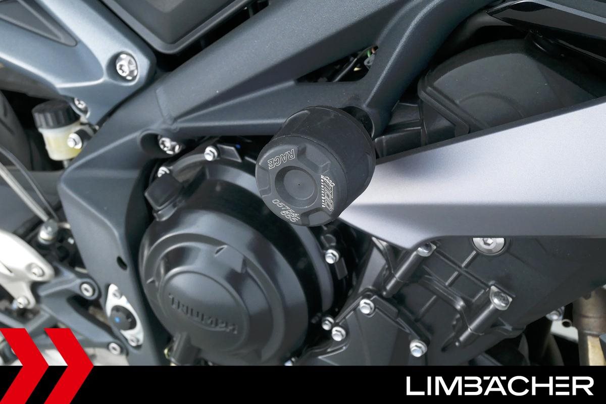 Eine Triumph Street Triple 675 in gepflegtem Zustand u.a. mit einer Tieferlegung sowie GSG-Moto-Sturzpads.