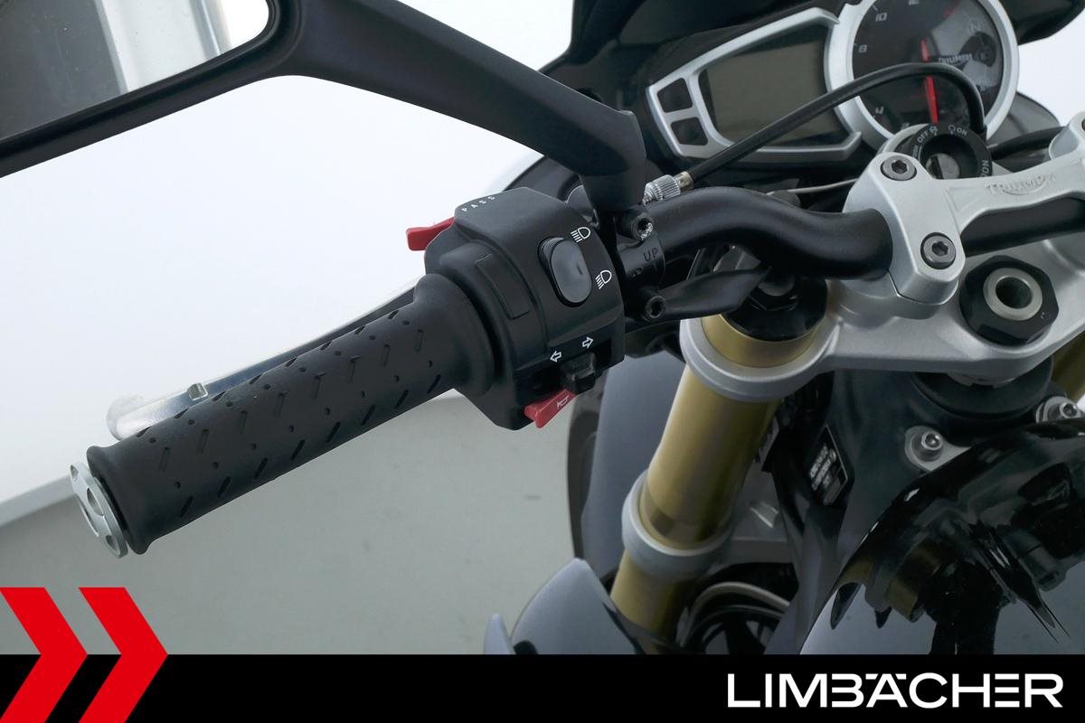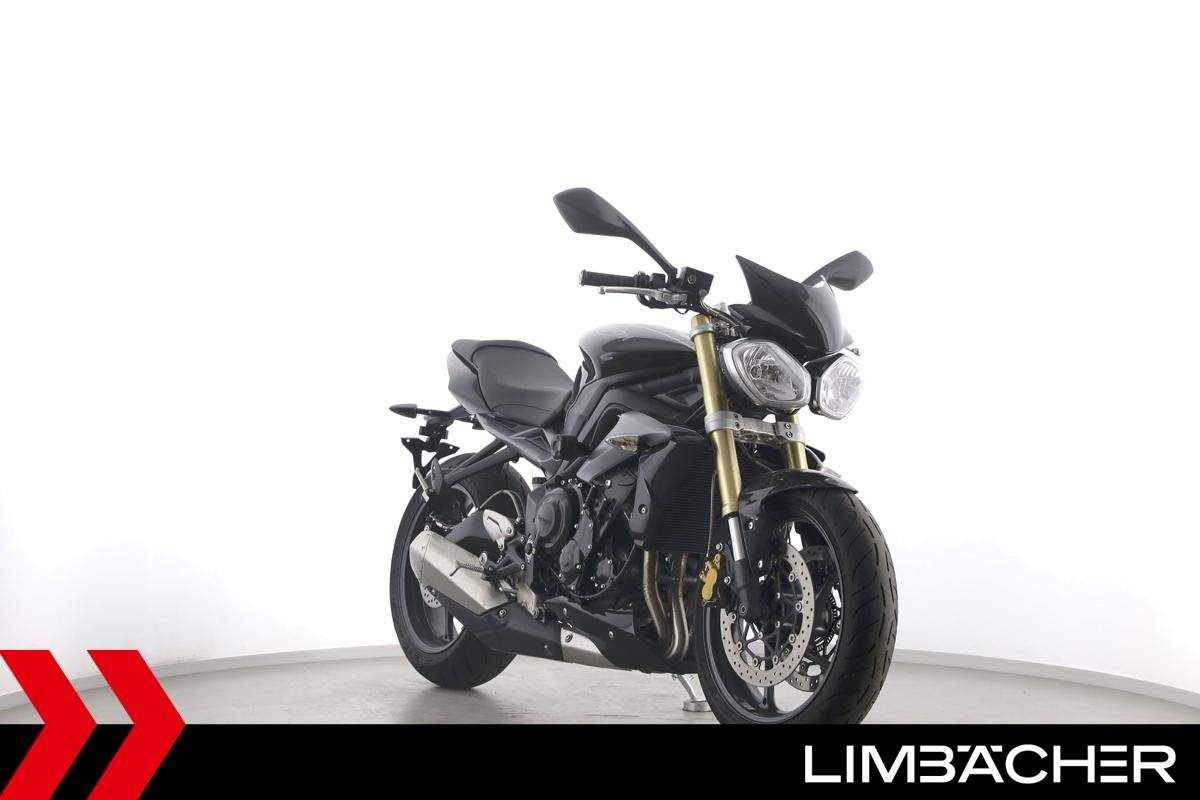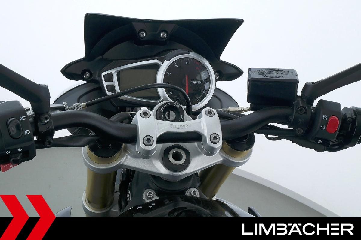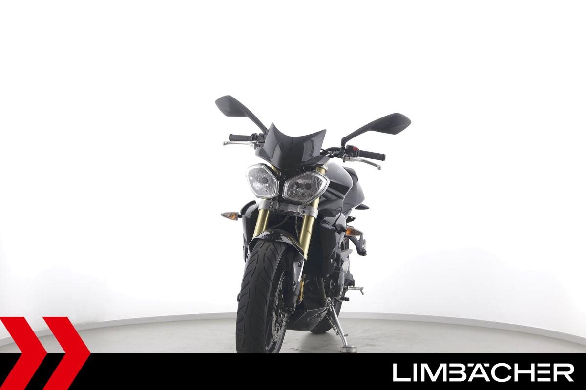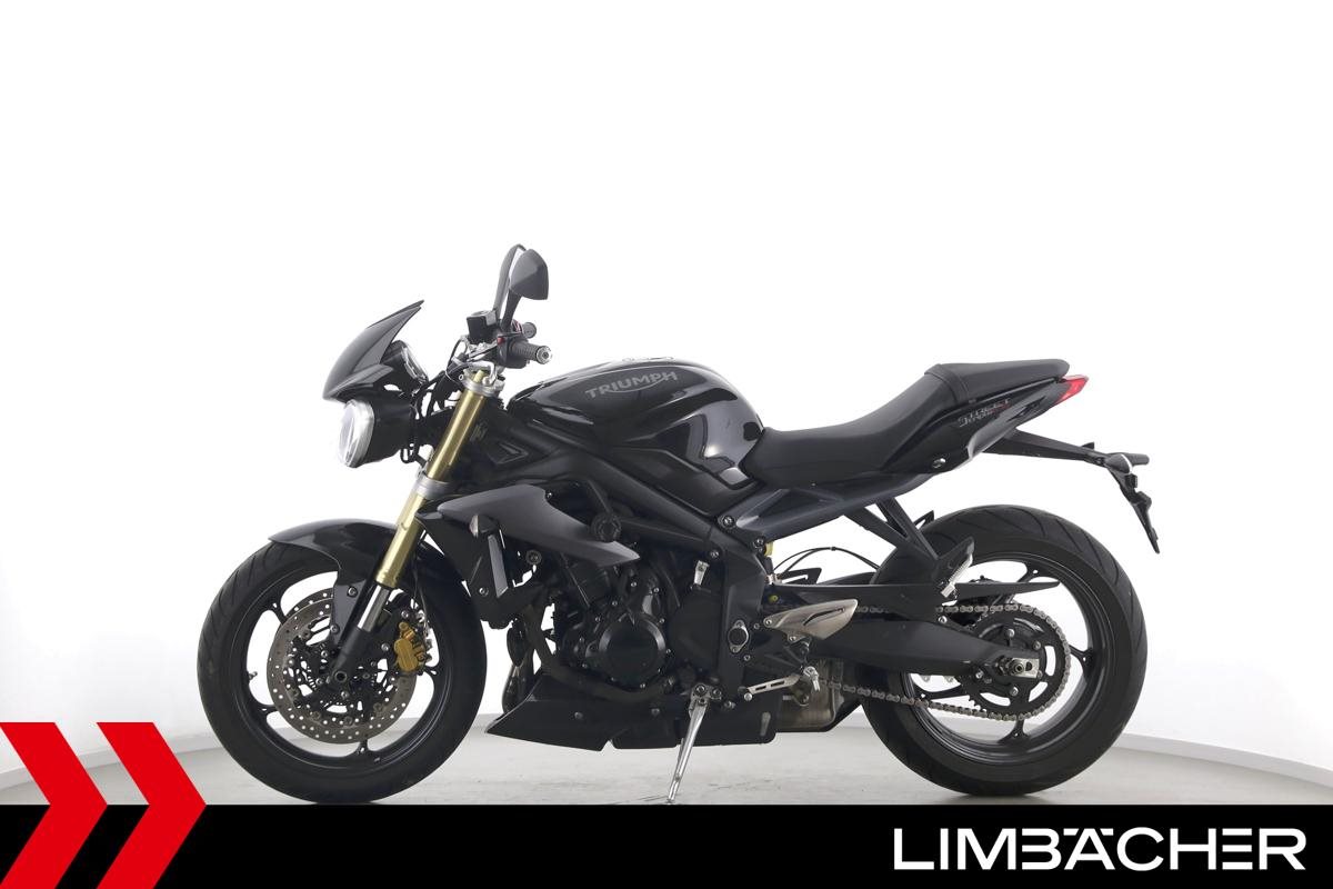 Eine Triumph Street Triple 675 in gepflegtem Zustand u.a. mit einer Tieferlegung sowie GSG-Moto-Sturzpads.
