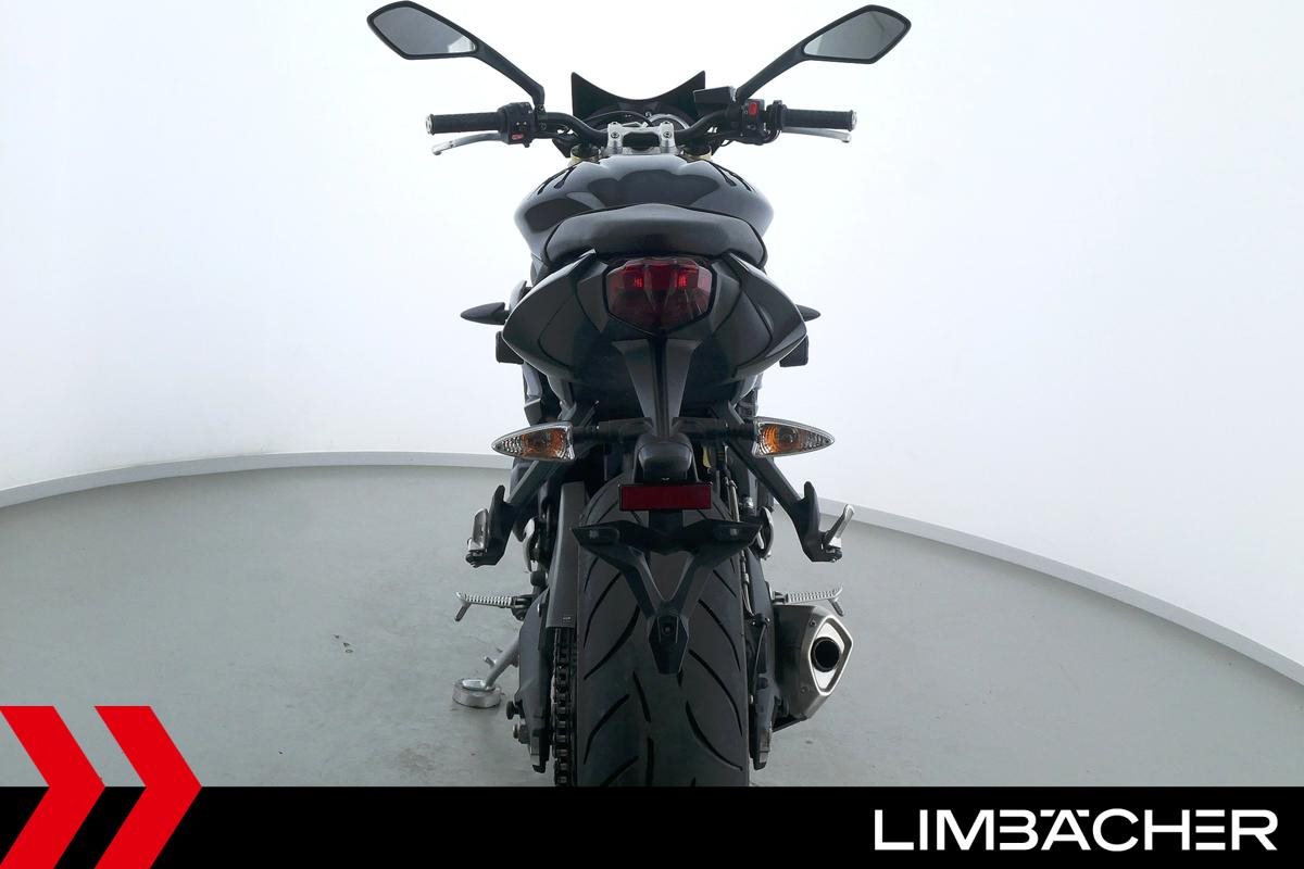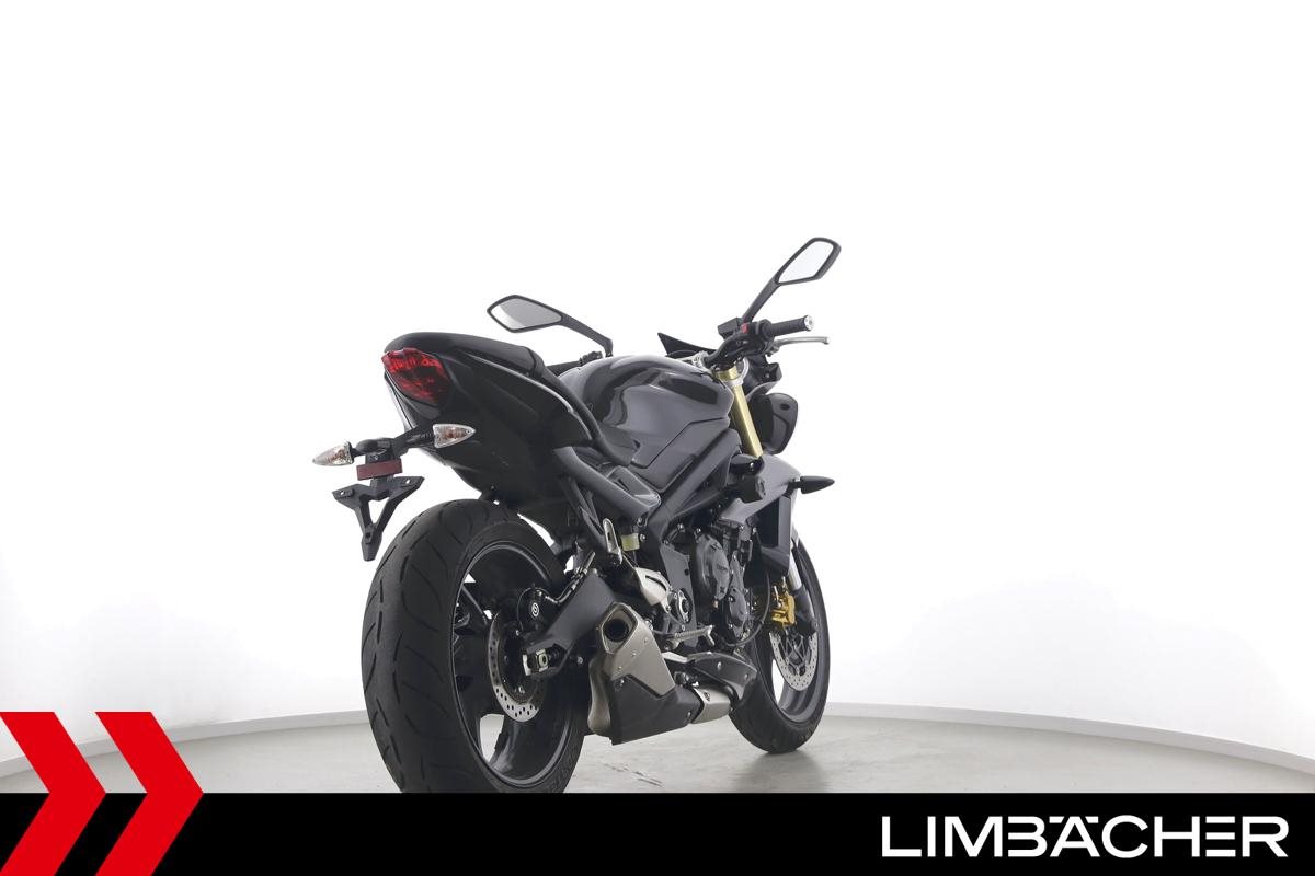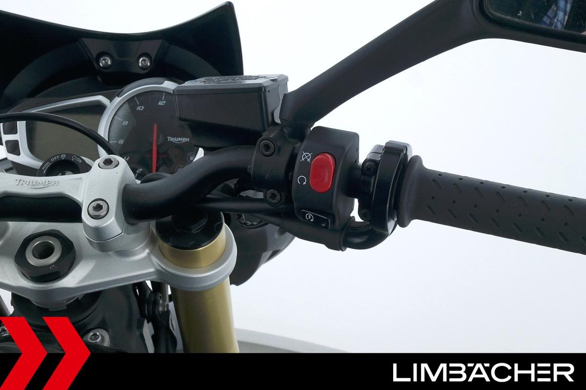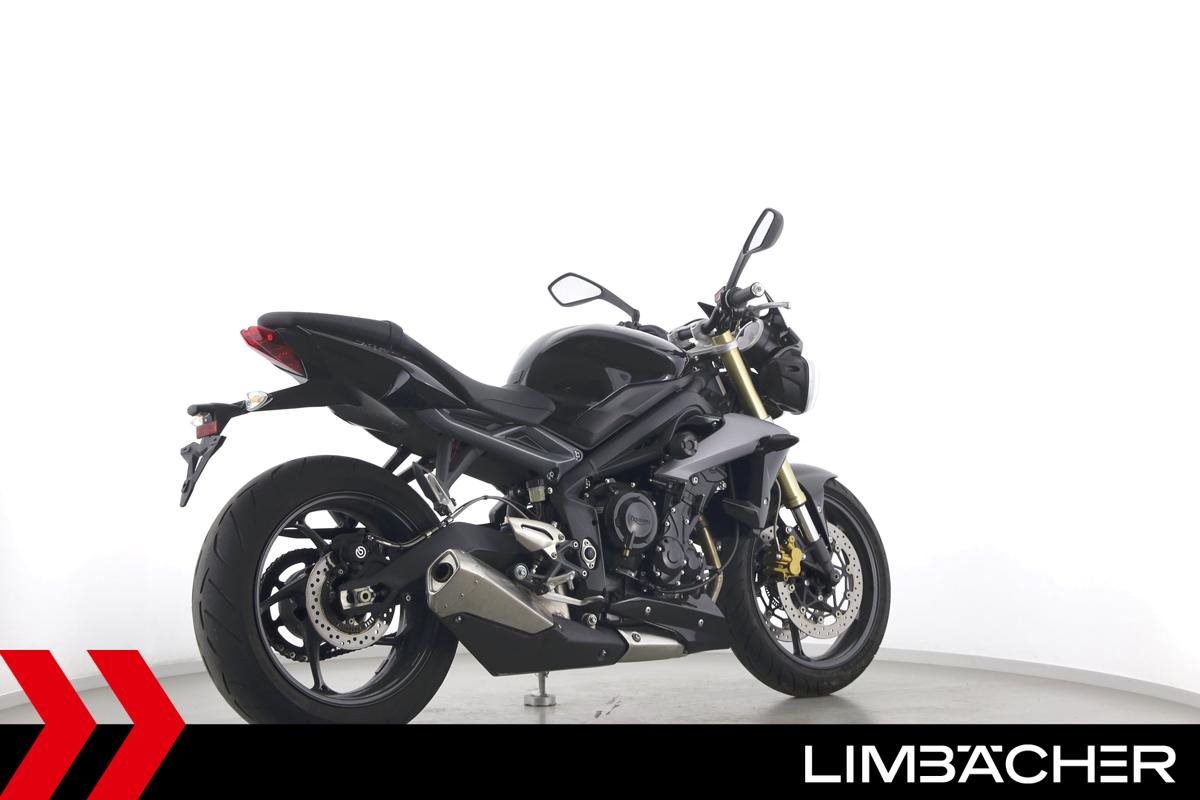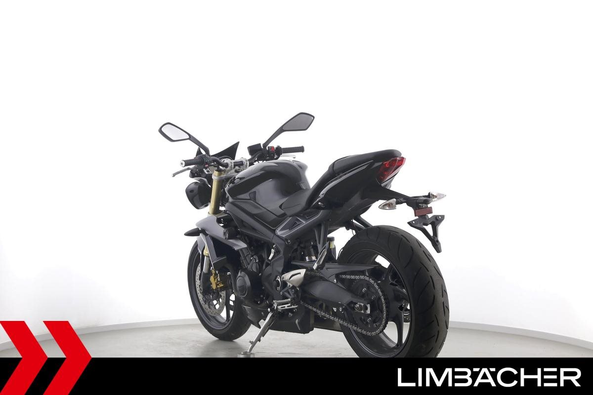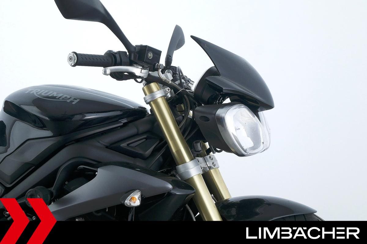 Eine Triumph Street Triple 675 in gepflegtem Zustand u.a. mit einer Tieferlegung sowie GSG-Moto-Sturzpads.