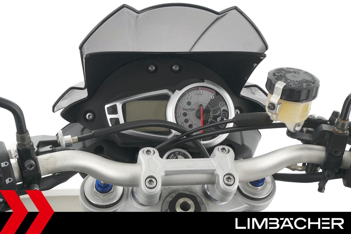 Eine Triumph Street Triple 675 R in gepflegtem Zustand u.a. mit kurzem Kennzeichenhalter sowie Sport-Windschild getönt.