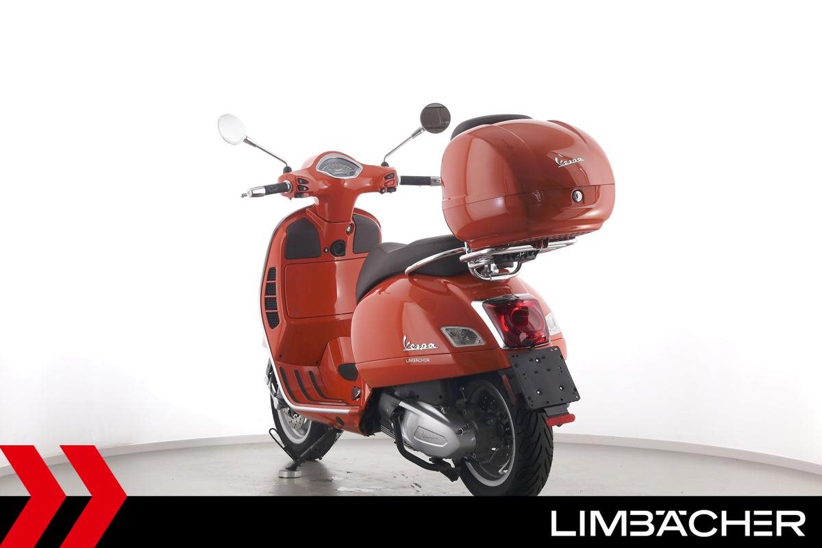 Eine scheckheftgepflegte Vespa GTS 300 aus erster Hand in Topzustand u.a. mit Vespa-Topcase sowie Ledersitzbank in Classic-Braun.