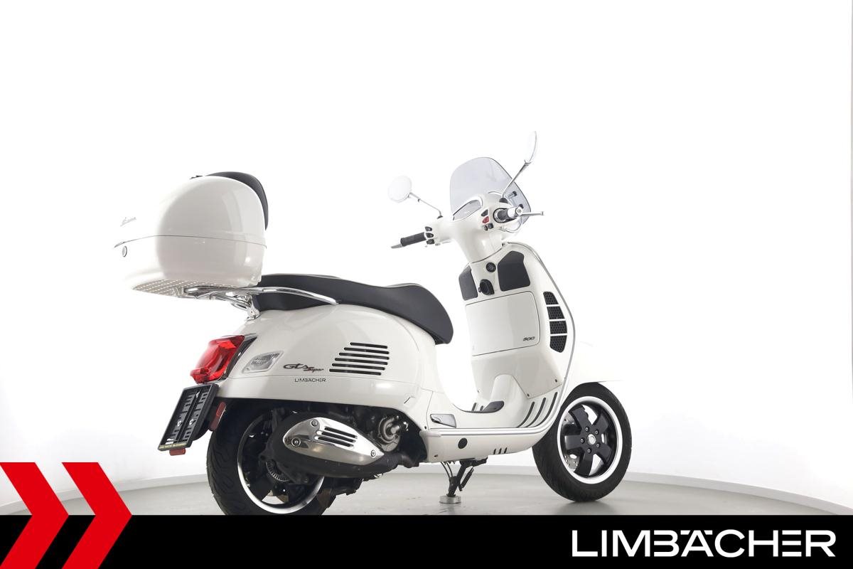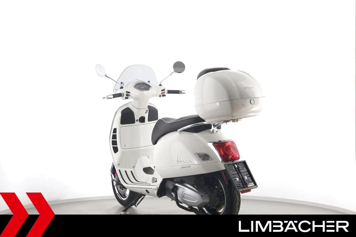 Eine Vespa GTS 300 E5 aus erster Hand in sehr gepflegtem Zustand u.a. mit Vespa-Topcase und Scheibe.