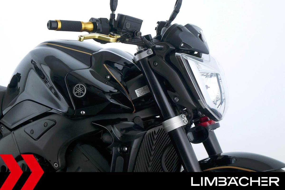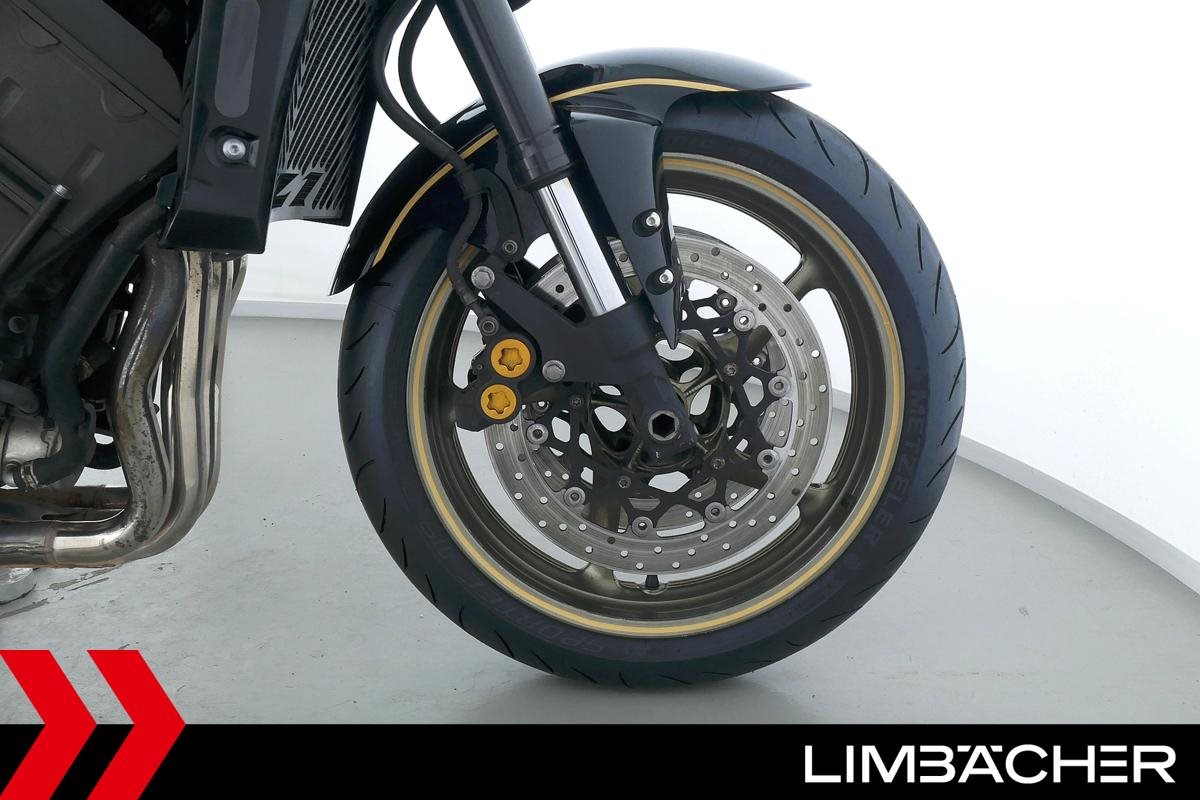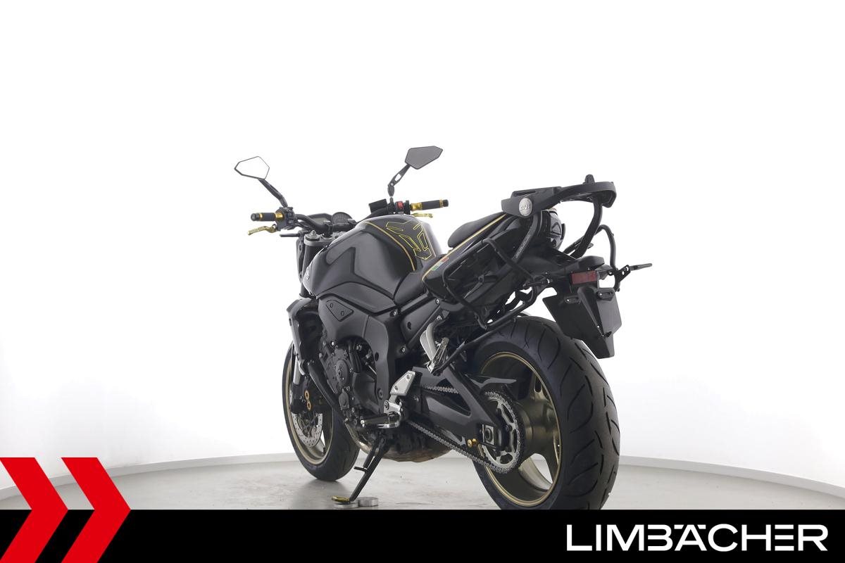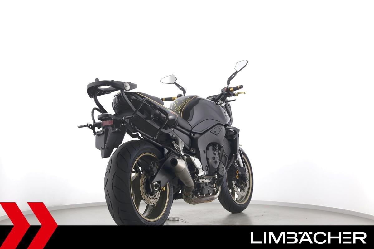 Eine Yamaha FZ1 N in gepflegtem Zustand u.a. mit SBK-Leovince-Endschalldämpfer sowie VTrec-Brems- und -Kupplungshebel.