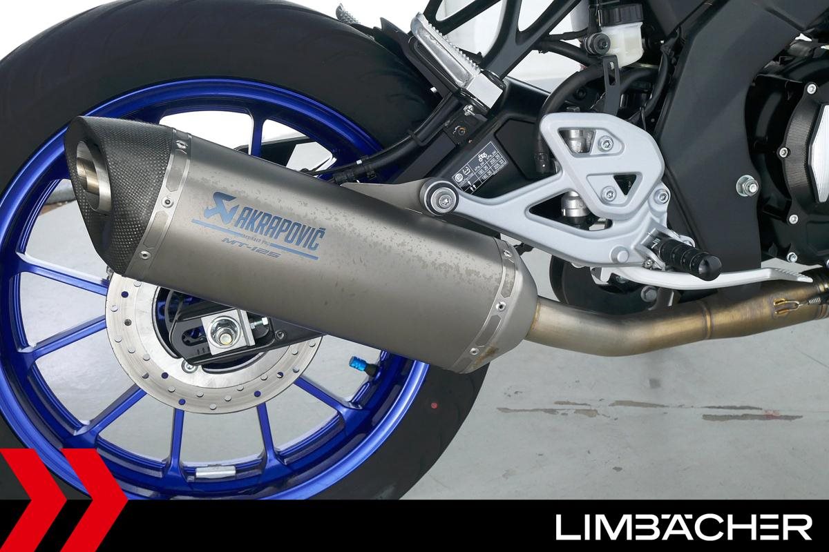 Eine Yamaha MT-125 aus erster Hand in Topzustand u.a. mit Akrapovic-Titan-Komplettauspuffanlage sowie getöntem Sportwindschild.