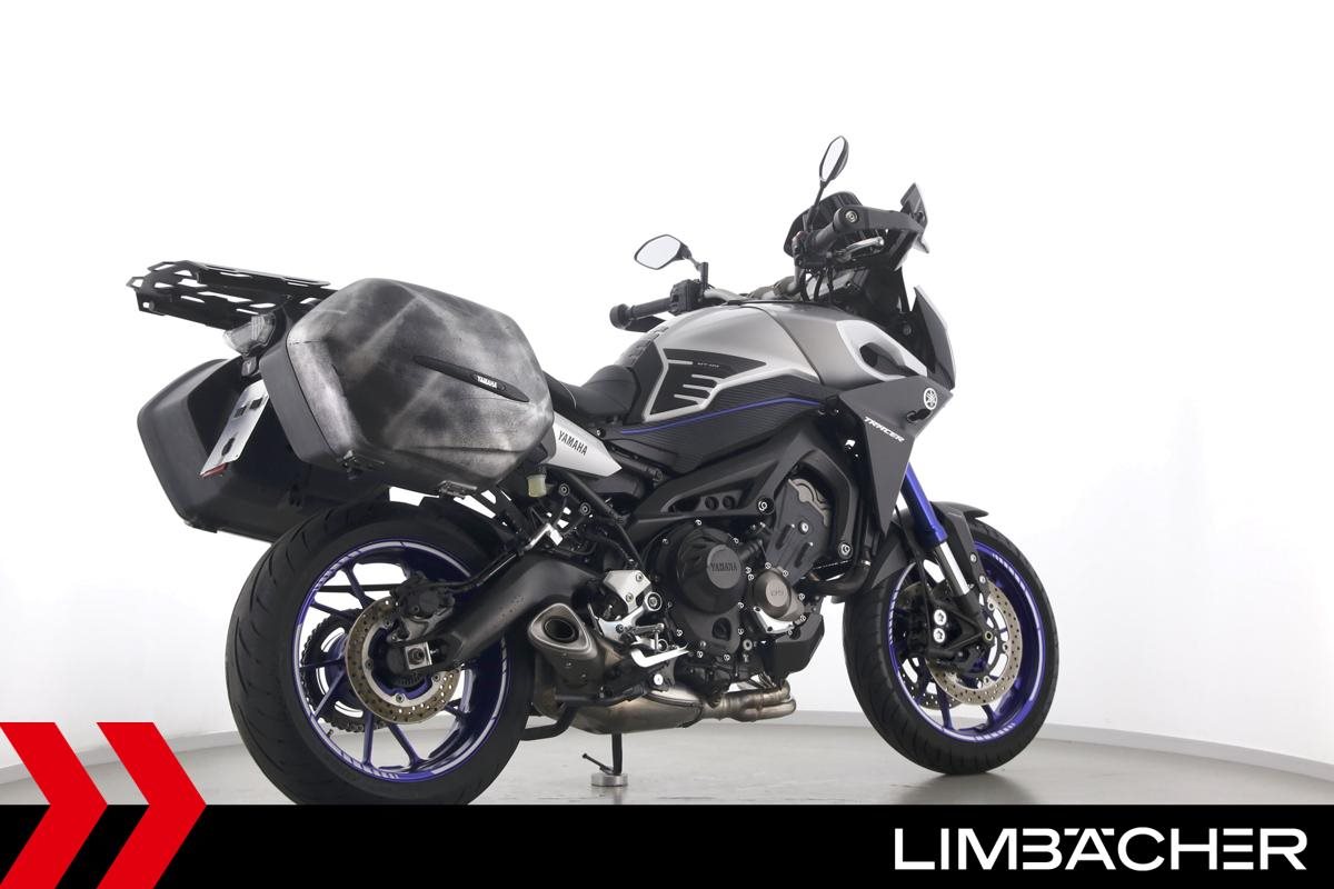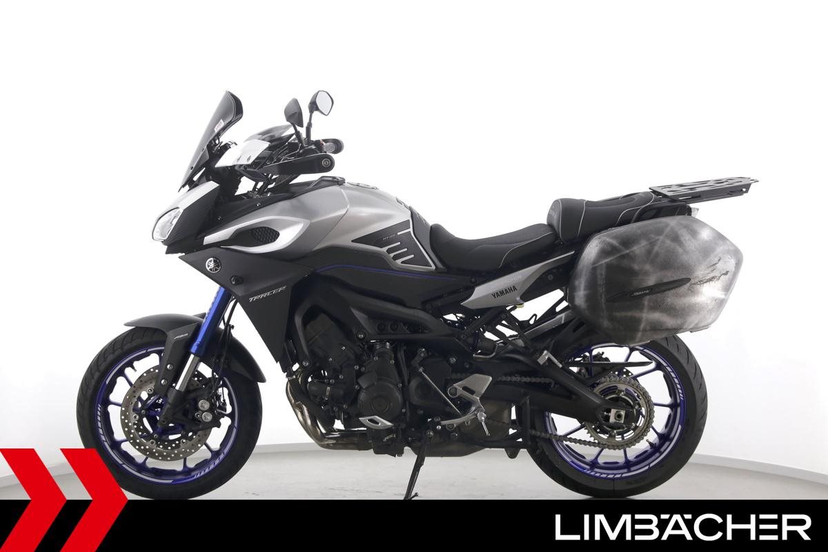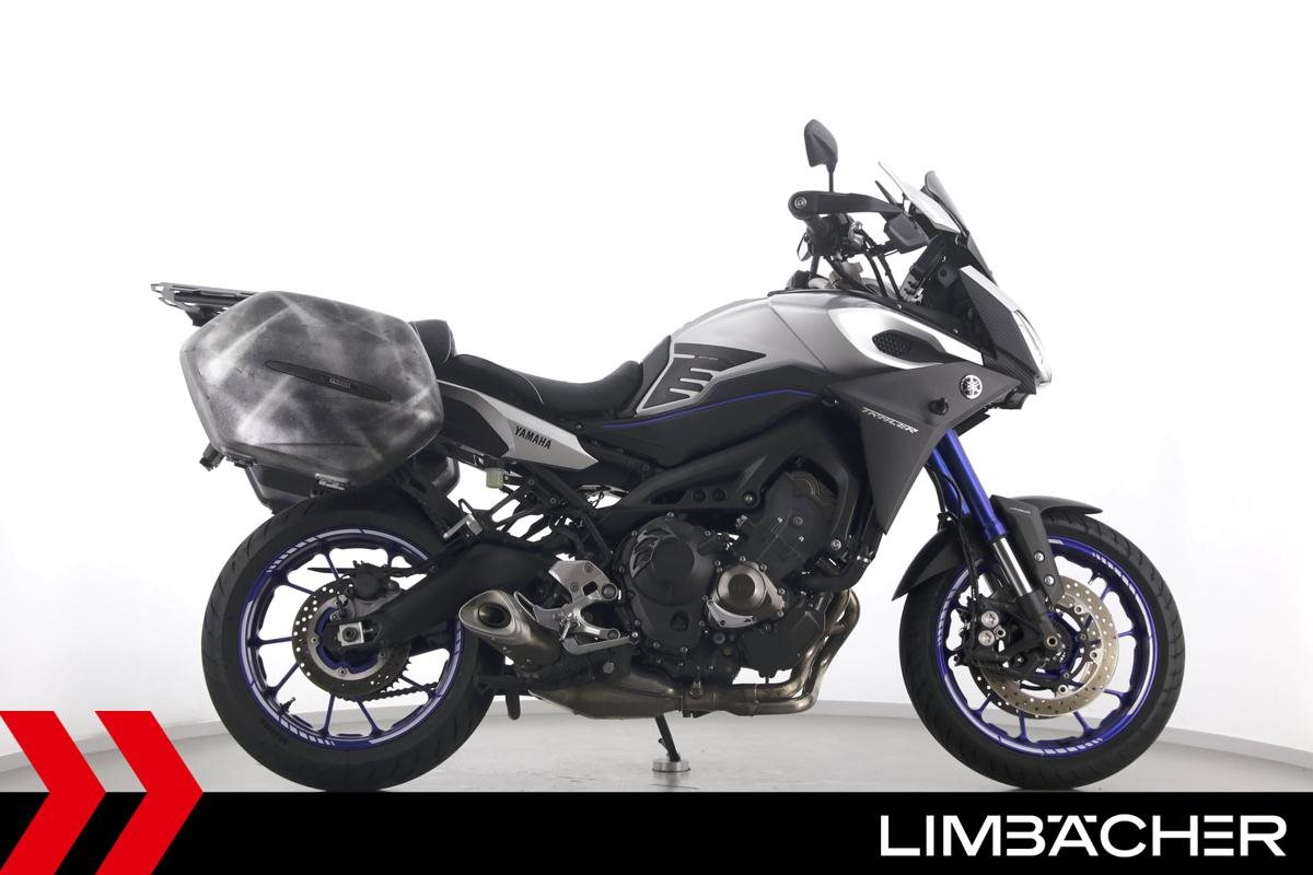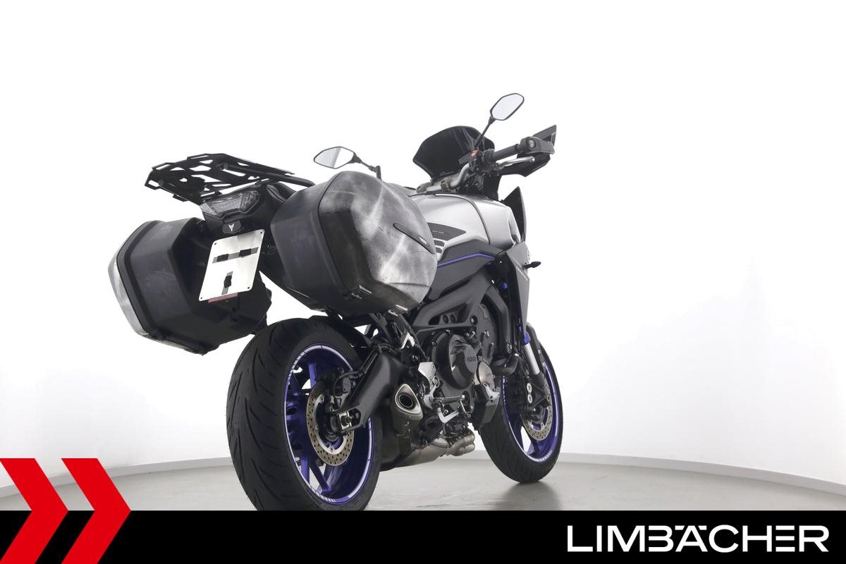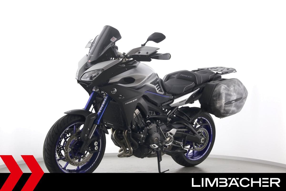 Eine Yamaha MT-09 Tracer in gepflegtem Zustand u.a. mit Yamaha-Koffersystem sowie MRA-Windschild dunkel.