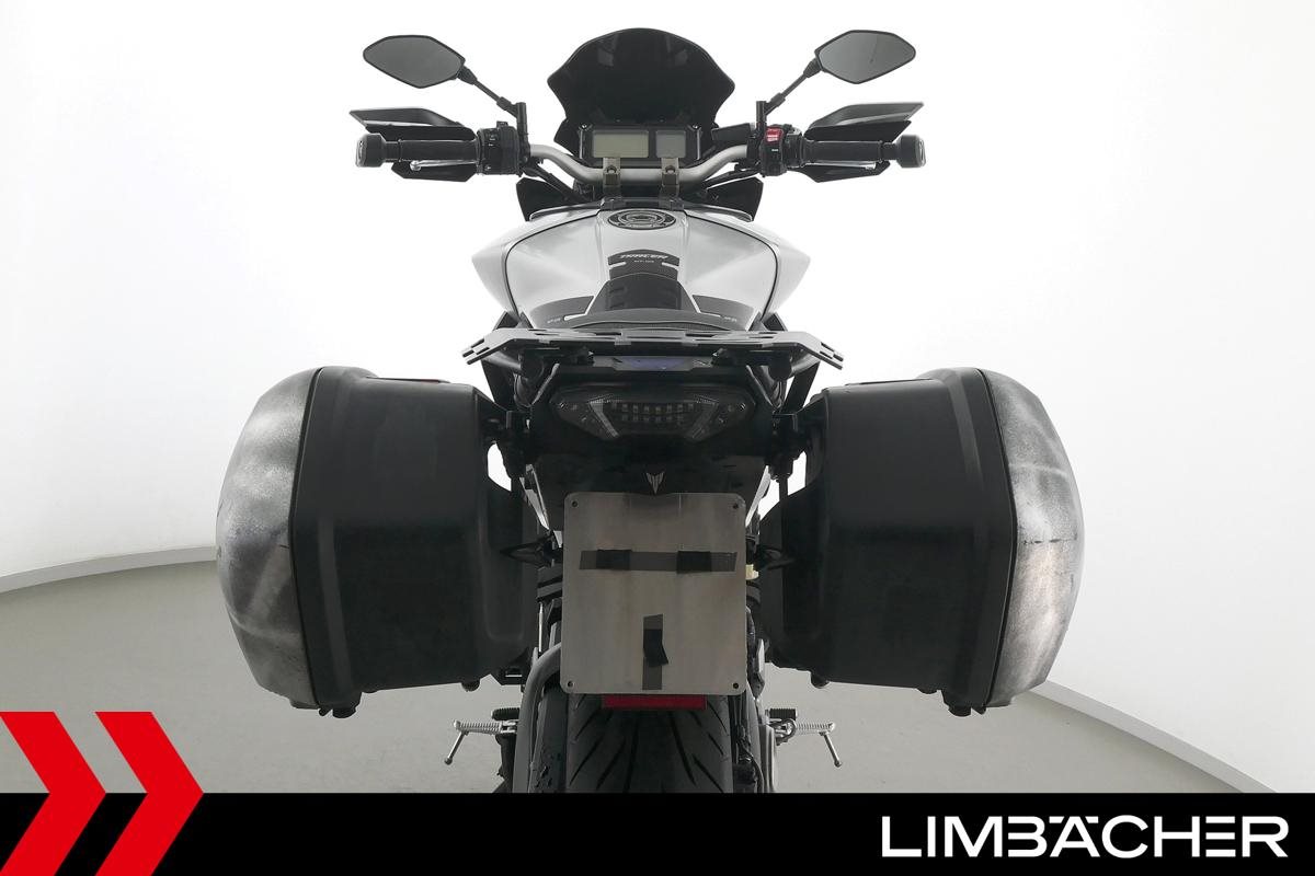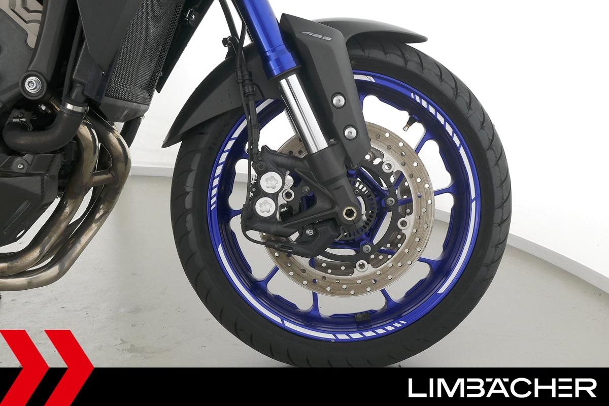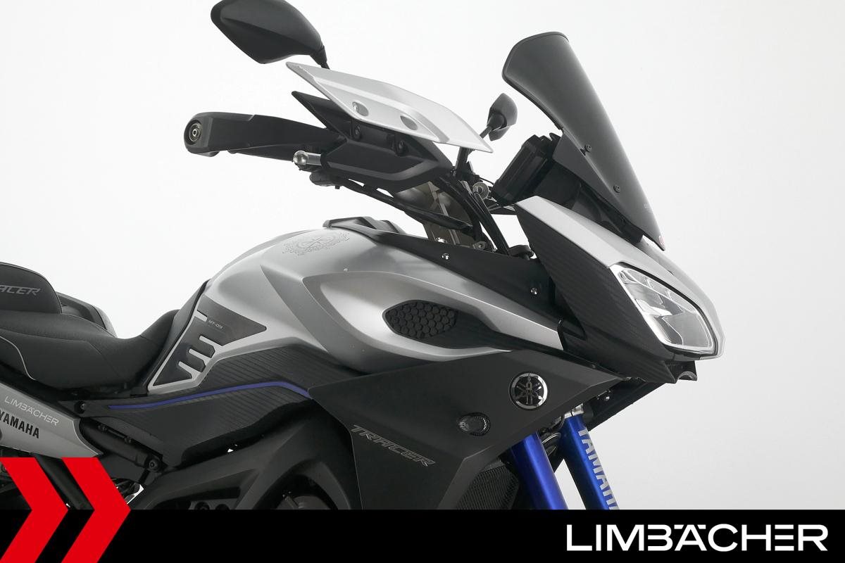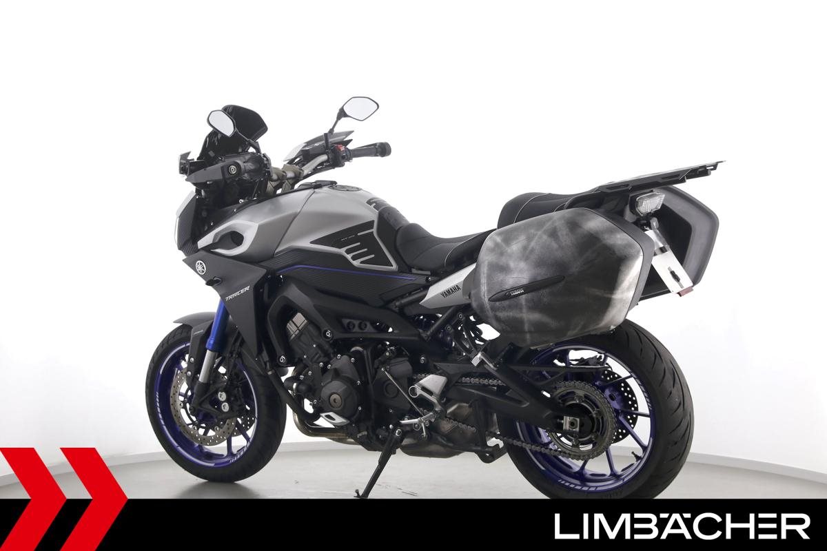 Eine Yamaha MT-09 Tracer in gepflegtem Zustand u.a. mit Yamaha-Koffersystem sowie MRA-Windschild dunkel.