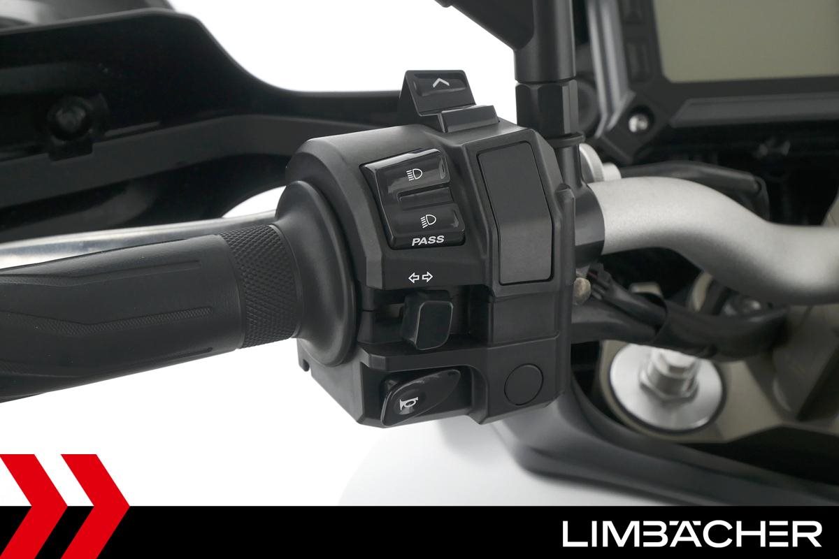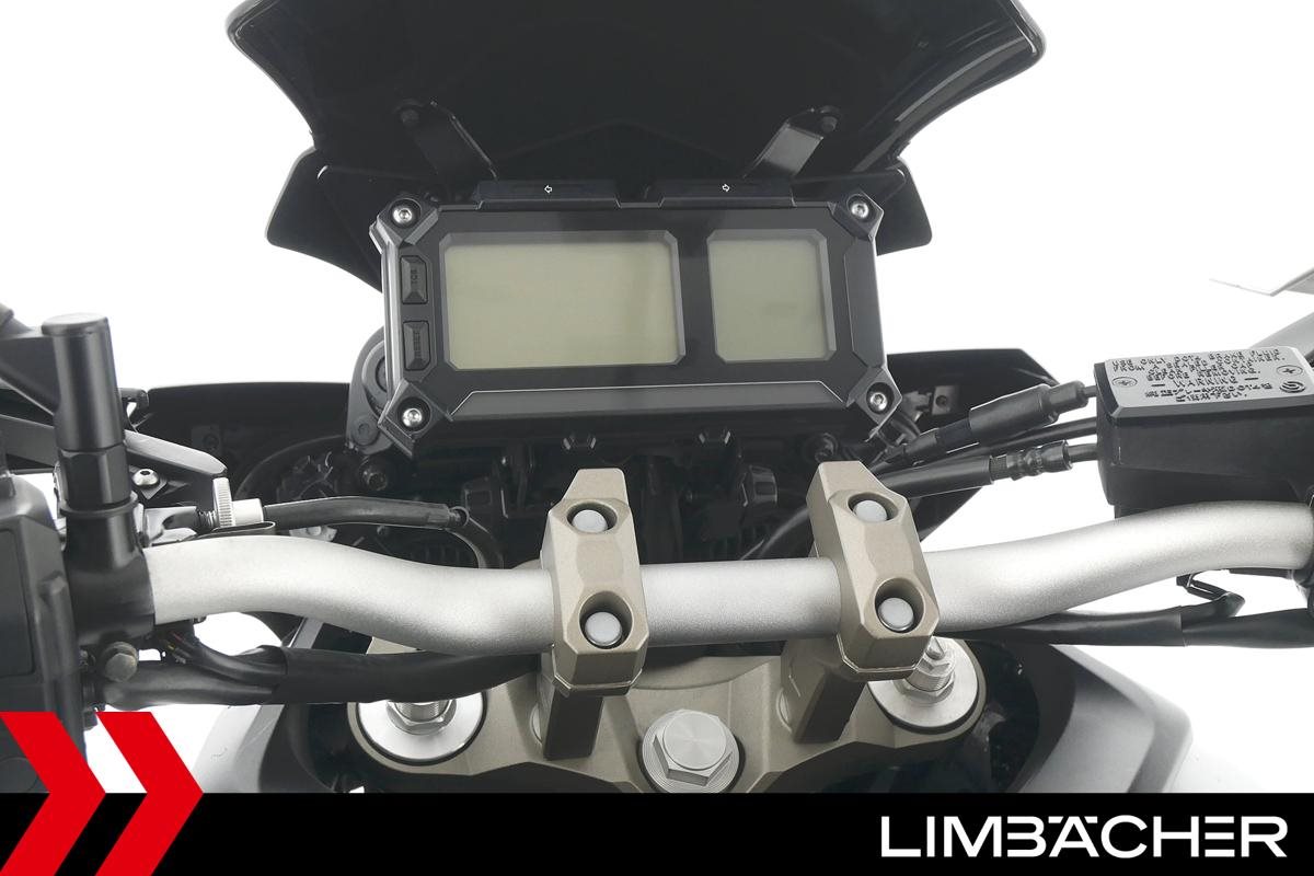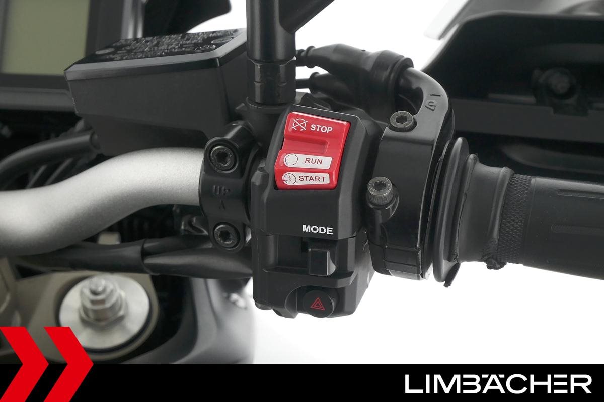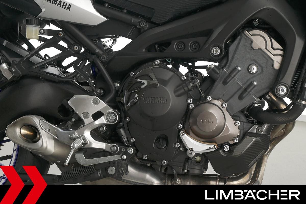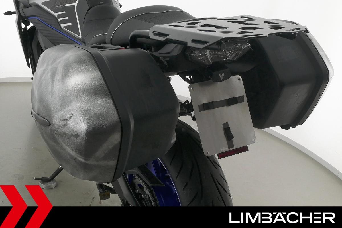 Eine Yamaha MT-09 Tracer in gepflegtem Zustand u.a. mit Yamaha-Koffersystem sowie MRA-Windschild dunkel.