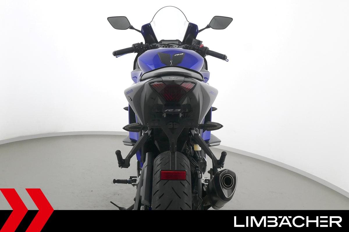 Eine Yamaha YZF-R3 aus zweiter Hand in gepflegtem Zustand u.a. mit Akrapovic-Endschalldämpfer sowie kurzem Kennzeichenhalter.